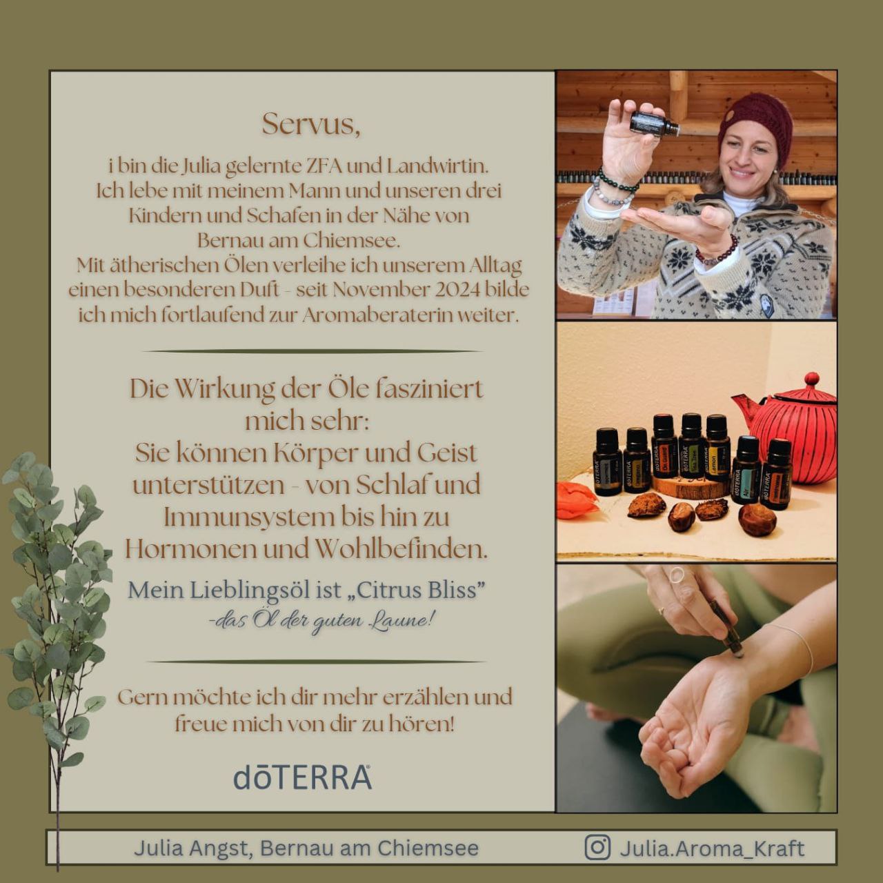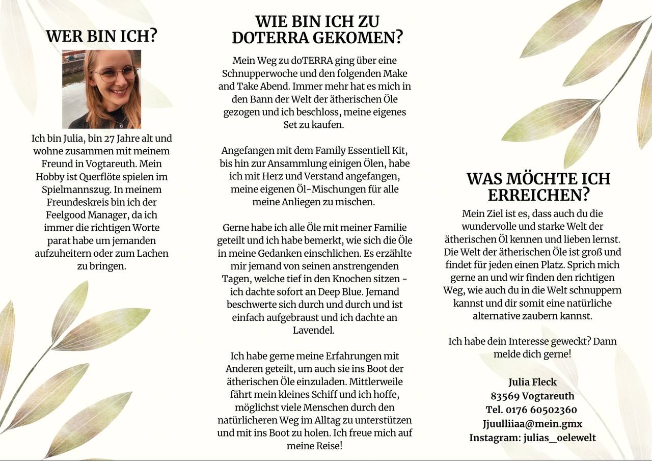 Mein Name ist Julia – ich bin 24 Jahre jung und Aromaberaterin mit Leidenschaft für ganzheitliche Gesundheit.