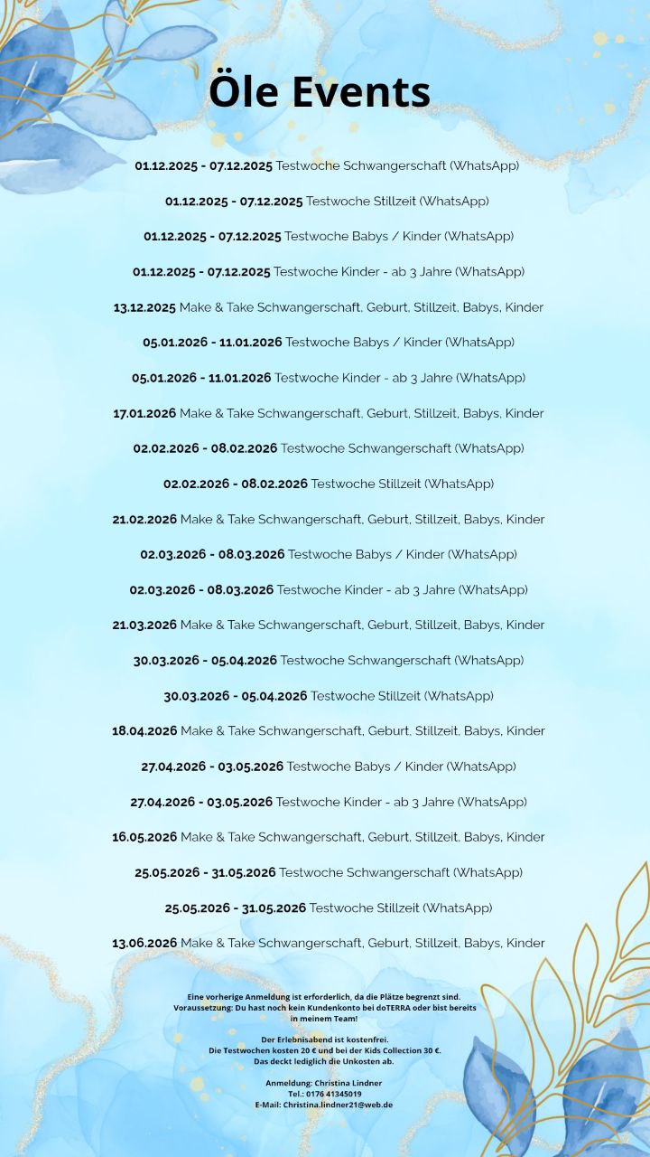 Mehr Infos findest Du in meinem Flyer und meine nächsten Öle-Events hier.